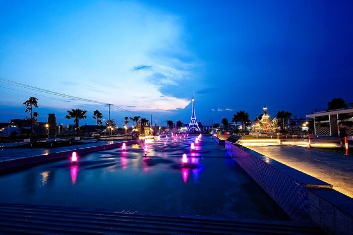 Nếu bạn ngày, khu du lịch sinh thái này gây ấn tượng bởi những công trình to lớn kỳ vĩ thì ban đêm khu đô thị này lại trở nên huyền bí bởi các sắc màu.