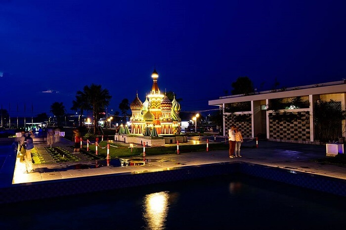 - Nếu chưa thể tranh thủ đi ban ngày, du khách có thể đi vào ban đêm, từ sau 18h30. Đây là thời điểm lý tưởng để chiêm ngưỡng các mô hình kỳ quan lên đèn rực rỡ.