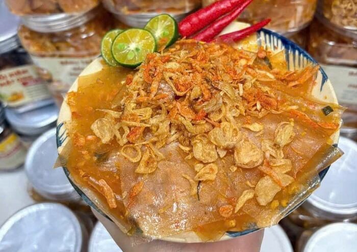 Là một tín đồ của món bánh tráng trộn, bạn nhất định không thể bỏ lỡ cơ hội thưởng thức đặc sản Long An ăn vặt này. Làm nên thương hiệu bánh tráng Long An phải kể đến những cái tên như: bánh tráng trộn Cầu Đúc,, bánh tráng sa tế, bánh tráng dẻo tôm/dẻo cay, bánh tráng muối tắc,vv…loại nào cực kỳ đưa miệng.