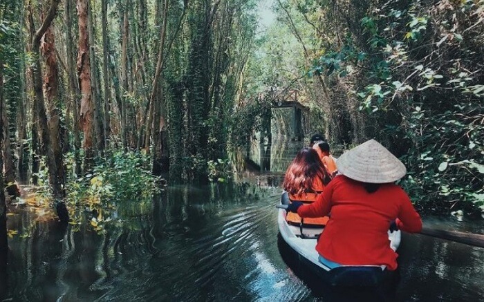 Đi xuồng ba lá ngắm cảnh quan ngập nước
