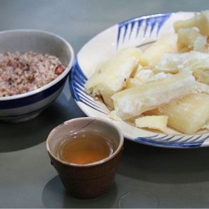 | Ra khỏi đường hầm, du khách sẽ được thưởng thức món khoai mì chấm muối vừng nổi tiếng trong thời kháng chiến | |